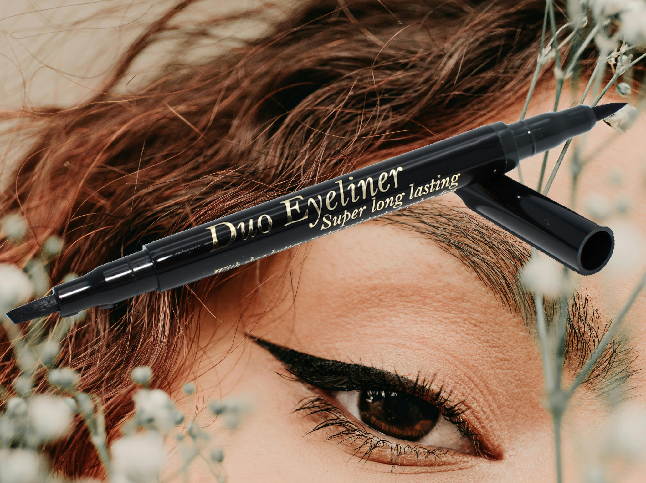 Bolero Cosmetics Duo Eyeliner Onze Eyeliner combineert een fijne en een brede tip voor moeiteloze precisie en diepte, jouw geheime wapen voor een onweerstaanbare oogopslag.